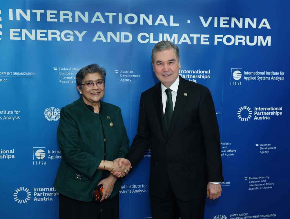 The talks were held during a meeting between Chairman of Turkmenistan’s Halk Maslahaty (Parliament) and UN Assistant Secretary-General Rabab Fatima, which took place in Vienna as part of Berdimuhamedov’s visit to the International Vienna Energy and Climate Forum.