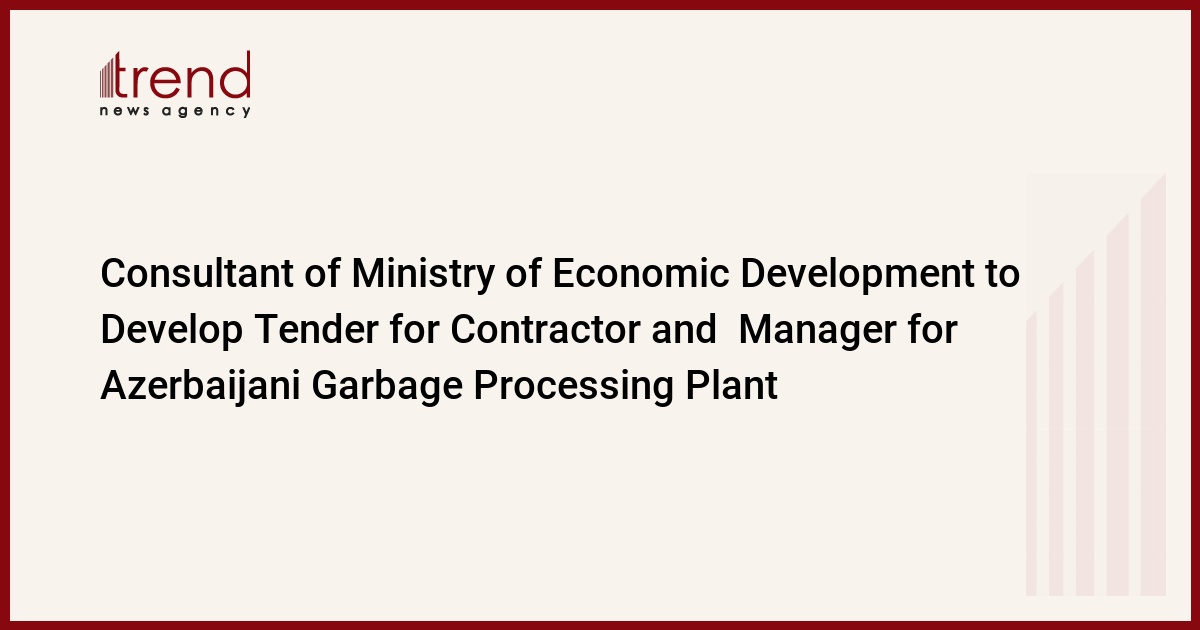 Azerbaijan, Baku / Trend corr. I.Khalilova / The Azerbaijan Ministry of Economic Development will announce a tender within a month to select a contractor to construct and manage the garbage processing plant, Askar Alakparov, the head of the Department on Investment Policy at the Ministry, said. The Ministry has hired a foreign consultant for this purpose.