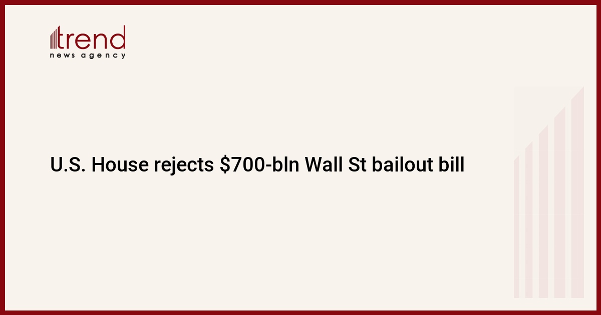 The U.S. House of Representatives on Monday rejected by a vote of 228-205 a Wall Street bailout bill that would have authorized the Treasury Department to spend up to $700 billion to purchase broken mortgage-backed bonds from banks with the goal of jump-starting stalled capital markets, Reuters reported.