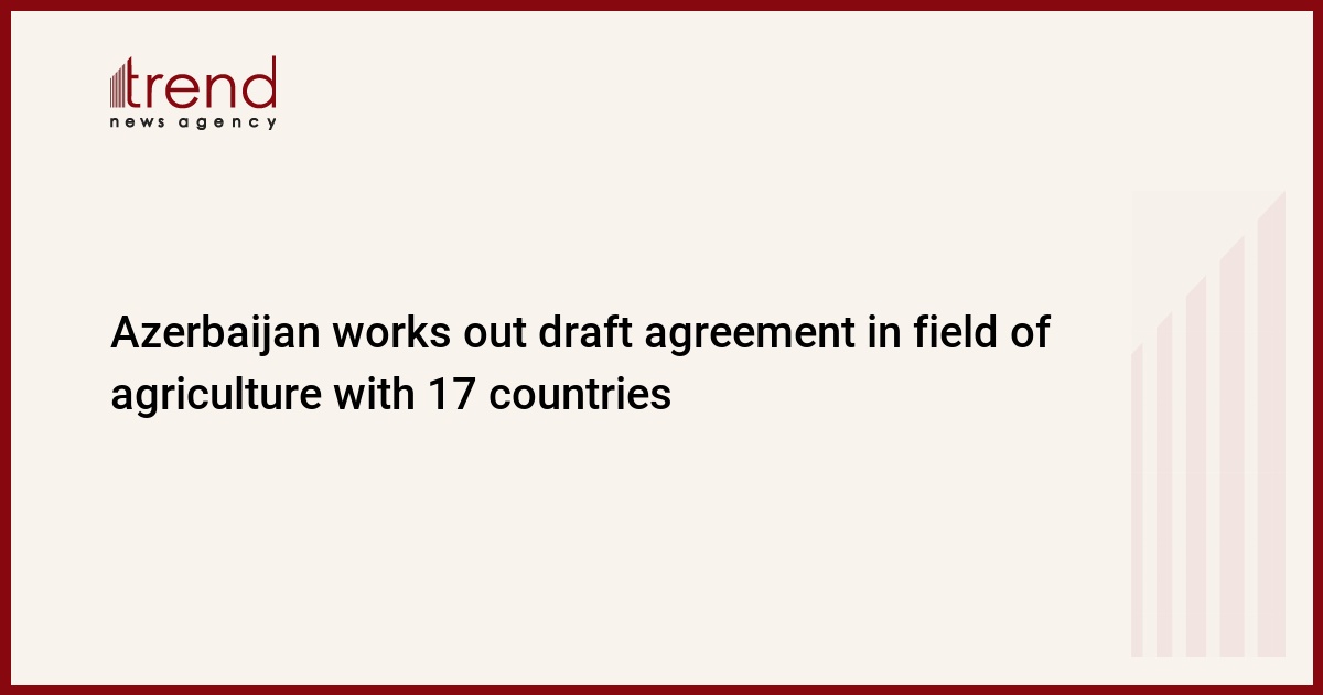Azerbaijan, Baku, Dec. 29/ Trend , S. Babayeva/ In 2008, Azerbaijan worked out 33 draft agreements in the field of agriculture, veterinary science, quarantine and protection of plants with 17 countries, Ministry of Agriculture of Azerbaijan said.