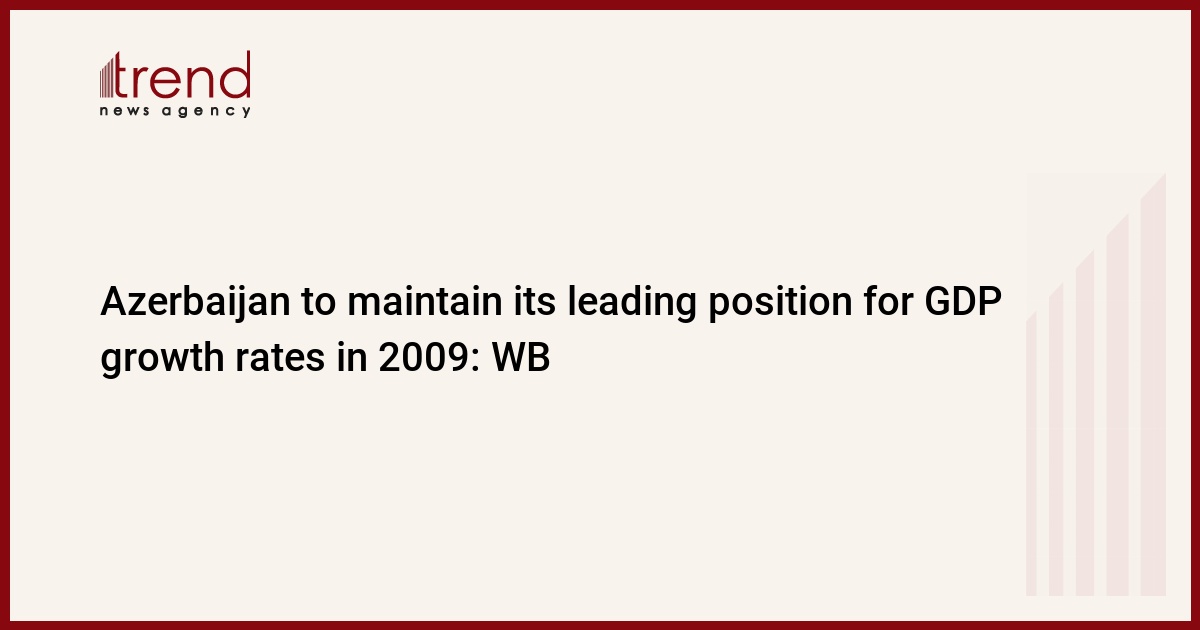 Azerbaijan, Baku, Jan. 8/ Trend , N. Ismayilova/ According to the World Bank (WB) forecast, growth rates of Azerbaijan's GDP will total 10.4 percent in 2009 and the country will maintain its leading position for GDP growth rate among the European and Central Asian countries, WB report 'Global Economic Prospects 2009' said.