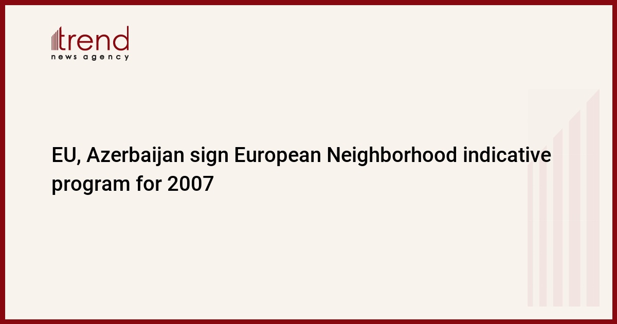 Azerbaijan, Baku, Jan. 9 / Trend , I.Khalilova/ "The Azerbaijani Government has signed with the European Commission a financial memorandum on the indicative program for 2007 as part of the European Neighborhood Policy (ENP), with the budget of 19 million euro," Rufat Mammadov, chief executive of the Tacis (Technical Assistance for the Commonwealth of Independent States) Coordinating Office, said on Jan. 9.