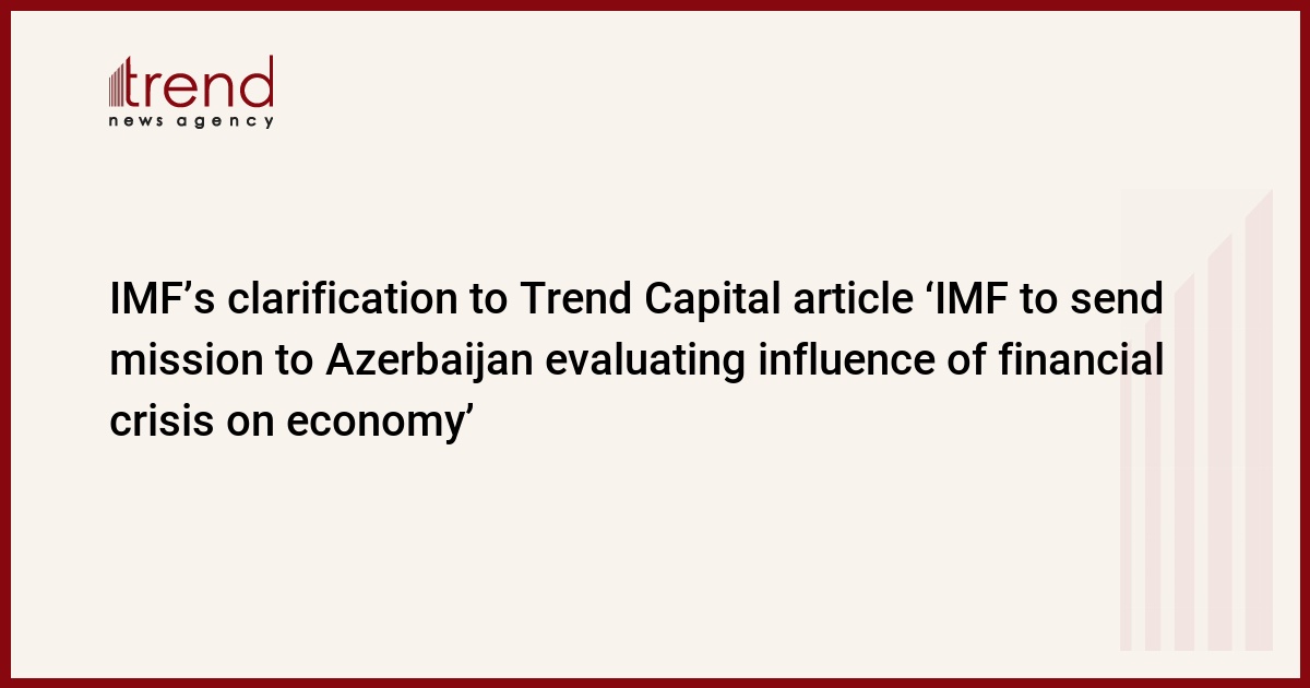Azerbaijan, Baku, Jan, 30/ Trend / On January 27, Trend news agency published the article "IMF to send mission to Azerbaijan evaluating influence of financial crisis on economy", which inaccurately reflected information provided to the journalists by the Resident Representative of the IMF in Azerbaijan.