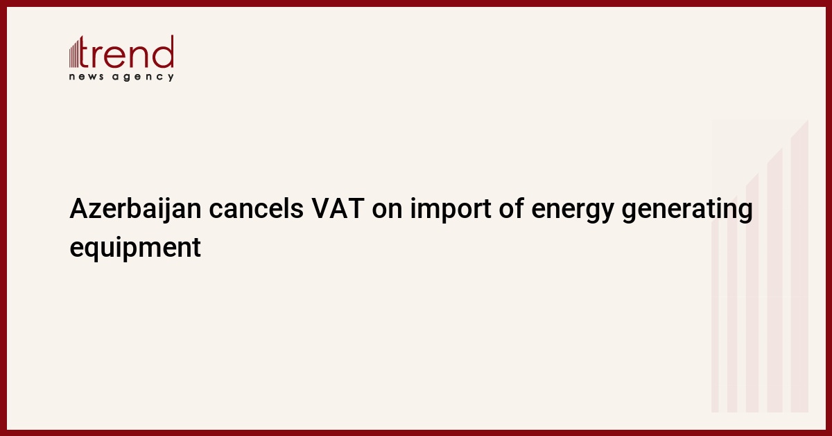 Azerbaijan has canceled value added tax (VAT) on import of energy generating equipment into the country in a bid to increase electricity generation and to supply population with energy on a permanent basis, a source in the government said.