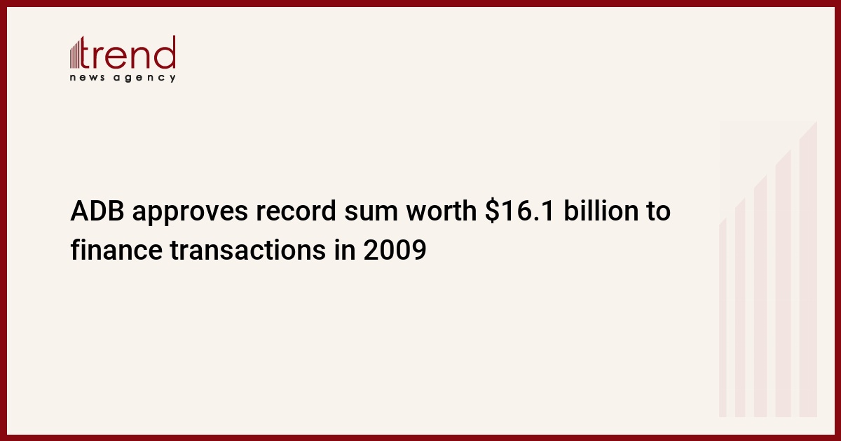 The Asian Development Bank (ADB) approved a record $16.1 billion in financing operations, a 42 percent increase over the $11.3 billion approved the previous year, according to ADB's 2009 Annual Report, released ahead of the 43rd Annual Meeting to be held 1-4 May in Tashkent, Uzbekistan.