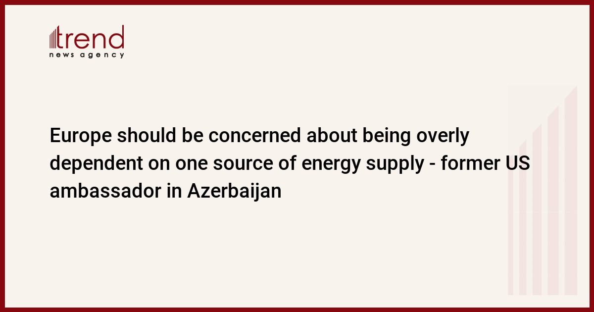 European countries should be concerned about being overly dependent on one source of energy supply Ross Wilson, the former US ambassador in both Turkey and Azerbaijan, tells the Hürriyet Daily News & Economic Review.