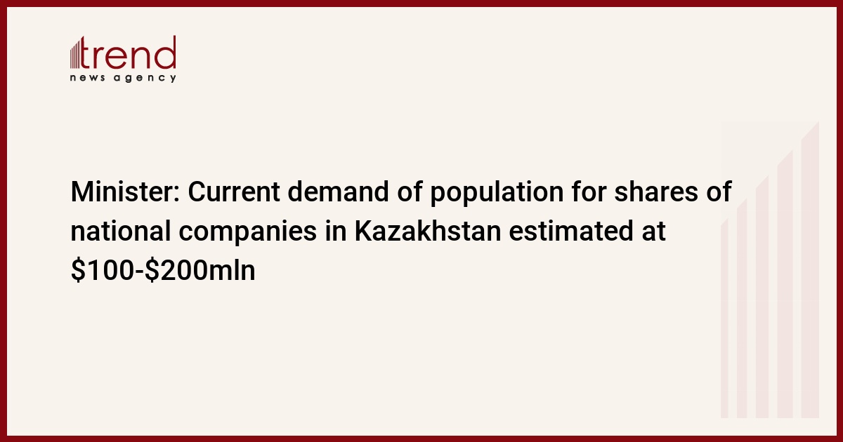 The current demand of population for the shares of national company in Kazakhstan is estimated at $100-200 million, the Minister of Economic Development and Trade Kairat Kelimbetov said at a government meeting in Astana.