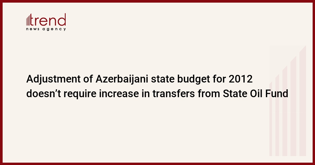 The increase in tax revenues allow not to increase the volume of transfers from the State Oil Fund of Azerbaijan (SOFAZ) in the adjustment of the state budget for 2012, Finance Minister Samir Sharifov said at the meeting of the parliamentary committee on economic policy during the debate of the bill on amendments to the state budget for 2012 on Saturday.