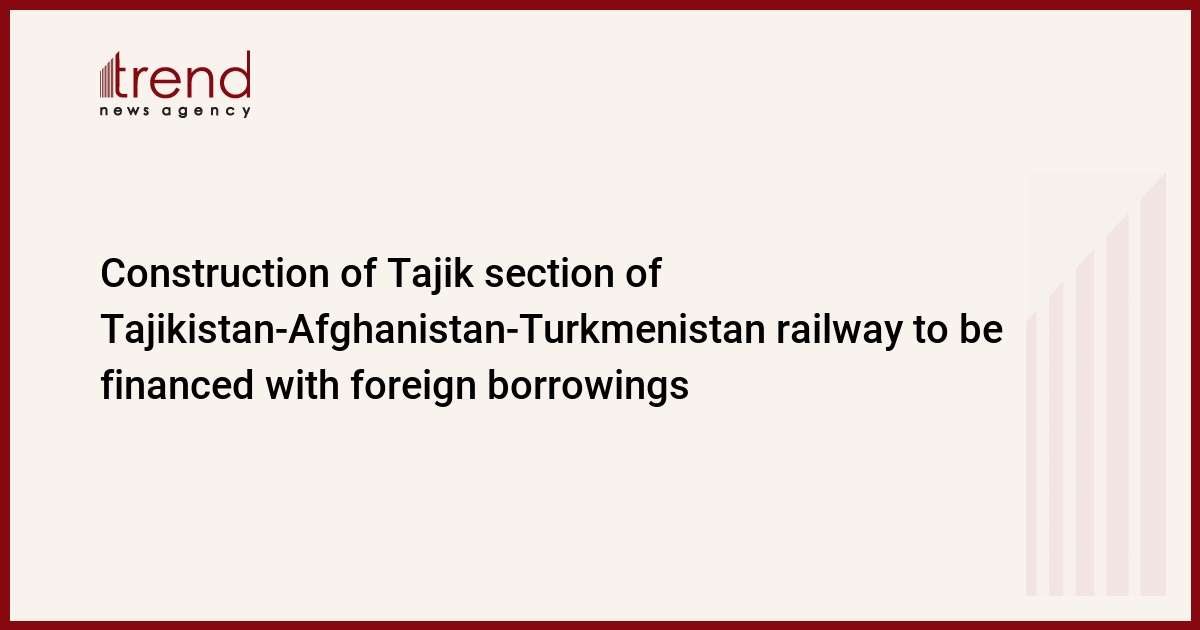 The construction of Tajikistan's section of Tajikistan-Afghanistan- Turkmenistan railway will be financed with foreign borrowings, Avesta.tj reported on Thursday.