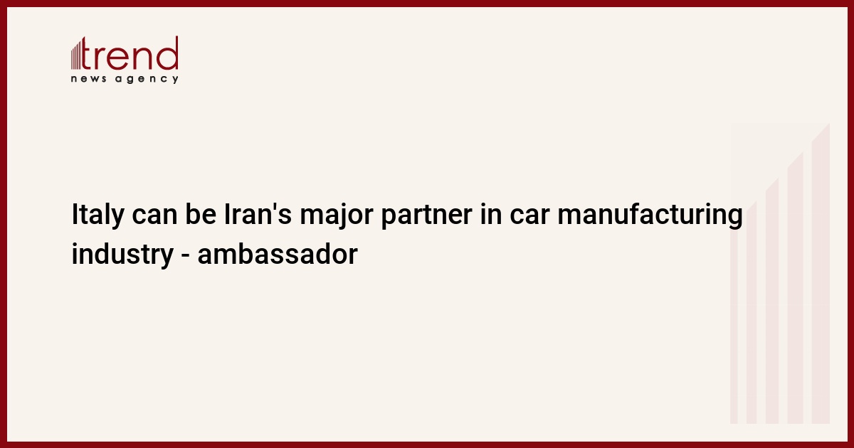 Italy can become Iran's major partner in car manufacturing industry, ambassador of the Islamic Republic in Italy, Jahanbakhsh Mozaffari told Trend on Dec. 16.