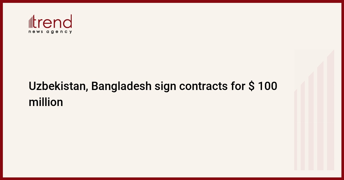 Uzbekistan and Bangladesh signed contracts and agreements for the supply of Uzbek goods to Bangladesh in the amount of more than $100 million, according to the press-service of the Ministry for Foreign Economic Relations, Investments and Trade of the Republic of Uzbekistan.