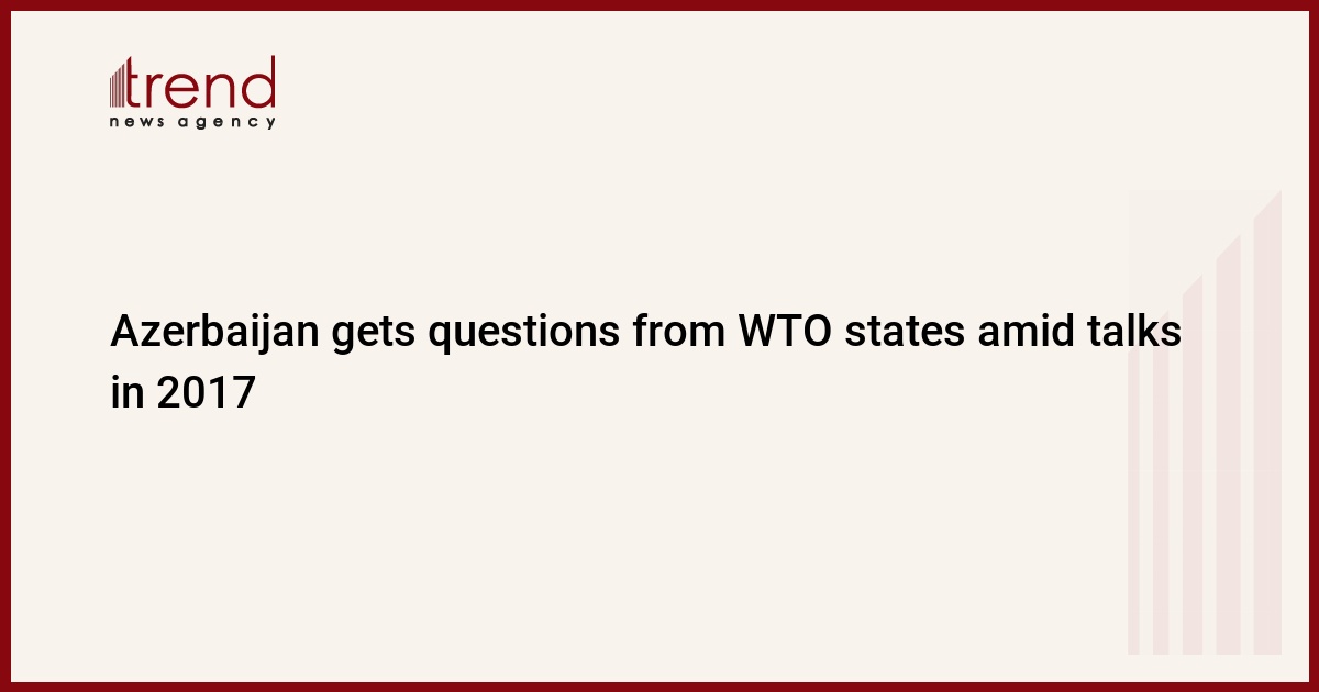 The World Trade Organization (WTO) working party presented Azerbaijan with questions to get prepared for the next round of talks on accession of the country into the organization, Mahmud Mammad-Guliyev, Azerbaijan’s deputy foreign minister, told Trend.