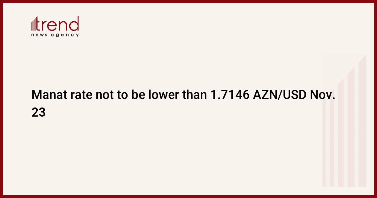 The lowest rate of Azerbaijan’s national currency, manat, against the US dollar was set at 1.7146 AZN/USD for Nov. 23 after a currency auction held by the Central Bank of Azerbaijan (CBA) on Nov. 22 with the participation of the country’s state oil fund SOFAZ, said the CBA.