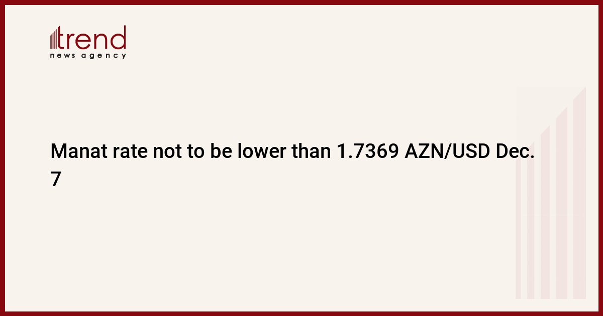 The lowest rate of Azerbaijan’s national currency, manat, against the US dollar was set at 1.7369 AZN/USD for Dec. 7 after a currency auction held by the Central Bank of Azerbaijan (CBA) on Dec. 6 with the participation of the country’s state oil fund SOFAZ, said the CBA.