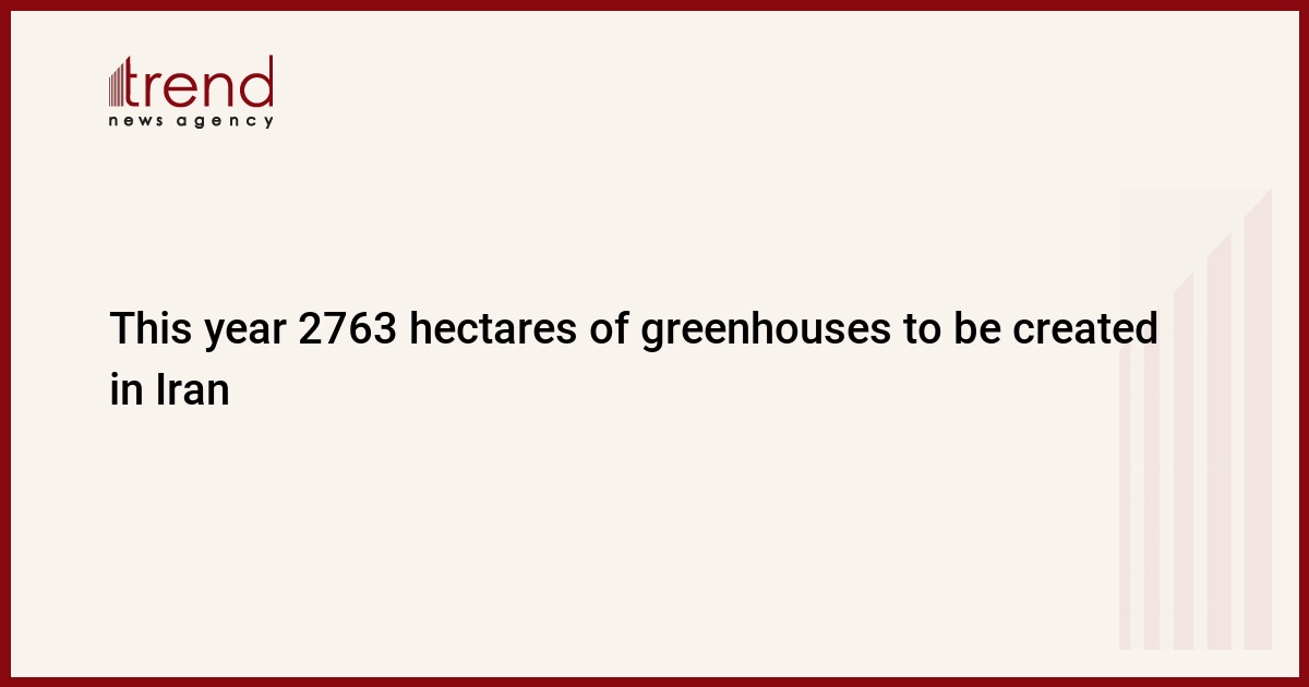 In the current Iranian year (started March 21), some 2,763 hectares of greenhouses are planned to be created in Iran, the public relations service of the Ministry of Agriculture Jihad of Iran said in a message citing Valiyollah Bani Ameri, the Executive Director of Iran's Greenhouse Development Program which operates under the Ministry of Agriculture Jihad.