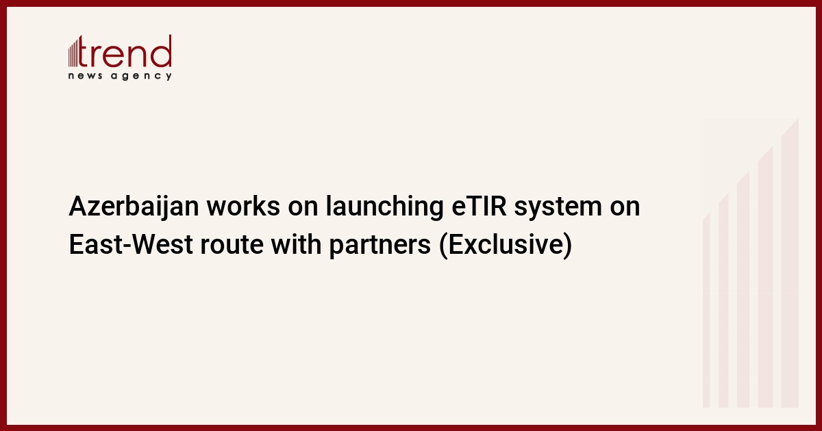 Azerbaijan, Kazakhstan, Georgia and Ukraine are working on launching the eTIR system (digitalization of document flow within international road traffic) on the East-West route, Safar Mehdiyev, Chairman of the State Customs Committee (SCC) of Azerbaijan, said in an exclusive interview with Trend.