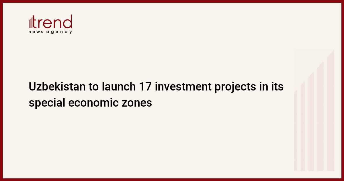 In the near future, 17 investment projects in such areas as agriculture, industry and tourism will be implemented in the special economic zones of Uzbekistan, Trend reports with reference to the Ministry of Economy and Industry.