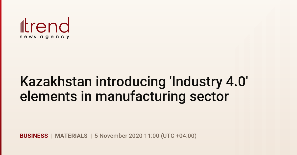 Kazakhstan is actively working on the introduction of elements of Industry 4.0 in the manufacturing industry and the Mining and Metallurgical Complex (MMC), the Zerde Holding JSC, responsible for the implementation of the Digital Kazakhstan state program, told Trend.