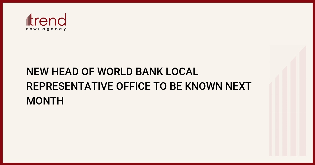 The name of the new head of the World Bank local representative office will be known in September. The former head Ahmed Djahani left Baku on 29 July and returned to Washington, although the period of his tenure expires 1, 5 years later, the World Bank Baku office told Trend.