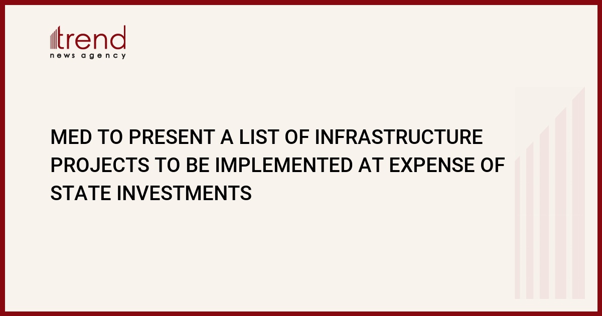 By 1 September the Ministry of Economic Development (MED) will present a list of infrastructure projects to be implemented at the expense of the public budget. “The draft list is ready,” Farhad Aliyev, the Minister of Economic development, told Trend.