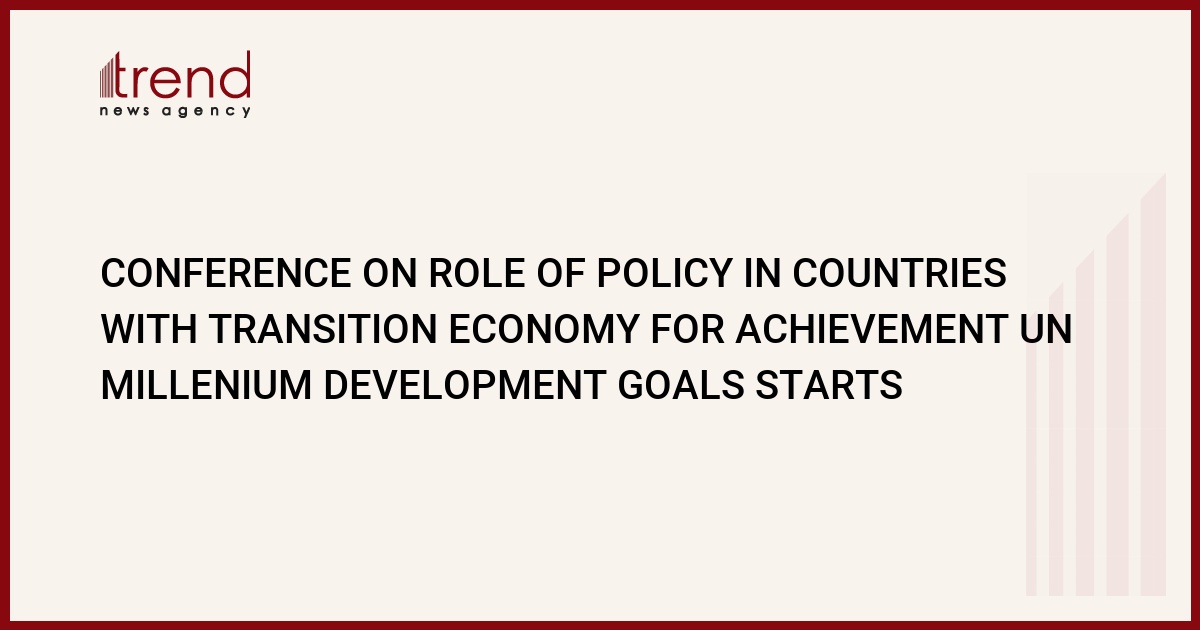International conference on role of policy in the countries with transition economy for achievement of the UN Millennium Development Goals (UNCTAD) started in Baku on Tuesday. Attending the event organized by the Azerbaijani Ministry of Economic Development and the UNCTAD are around 100 representatives from 20 countries with transition economy.