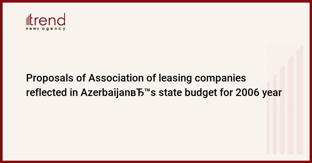 Proposals of the Association of leasing companies of Azerbaijan have been reflected in the country’s state budget for 2006, the Association Board chairman Djeyhun Mammadbeyli told journalists on 22 December, Trend reports.