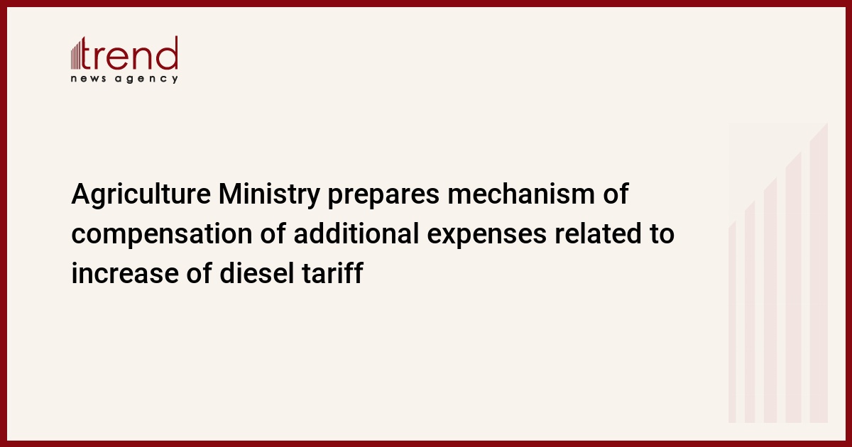 The Azerbaijani Agriculture Ministry prepares mechanism of compensation of the additional expenses related to the increase of diesel fuel tariff. The Agriculture Ministry established a special group of representatives of different departments and divisions of the Ministry led by Ilham Guliyev, the deputy Minister, in this regard, Trend reports.
