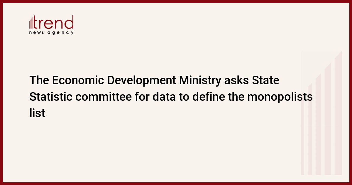 To define the real monopolists in the country the Economic Development Ministry asks State Statistic committee for the first-hand data on the businesses acting in the country. The State Statistical committee data is necessary to register the monopolies, the anti-monopoly policy department, Rahim Huseynov told Trend.