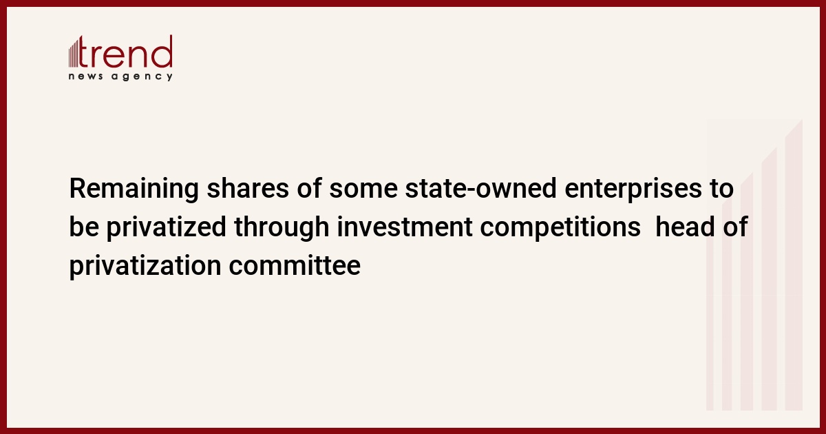 The State Committee on privatization of pubic property offers to privatize the state-owned shares of the small and medium-scale enterprises, the privatization of which was carried out under the first State Program on privatization of public property, through the investment competitions. Karam Hasanov, the chairman of the State Committee on Privatization, told journalists that some 800 enterprises remained with the unrealized packet of shares 30% each. Proposals on the denationalization through the investment competitions have been submitted the government.