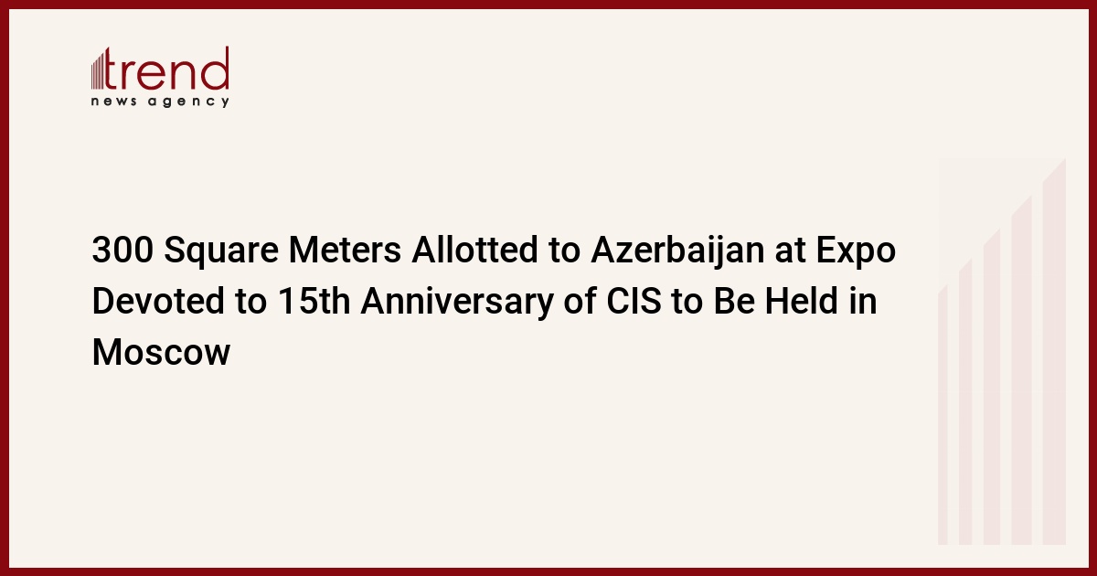 An exhibition on the occasion of 15th anniversary of CIS with the participation of the Azerbaijani delegation is expected to be held in Moscow on October 25-28. According to Azerbaijan`s Economic Development Ministry, the stand of the total area of 300 square meters will be allotted to Azerbaijan at the exhibition to be organized on the territory of the All-Russian Exhibition Centre (former VDNKH) in Moscow.