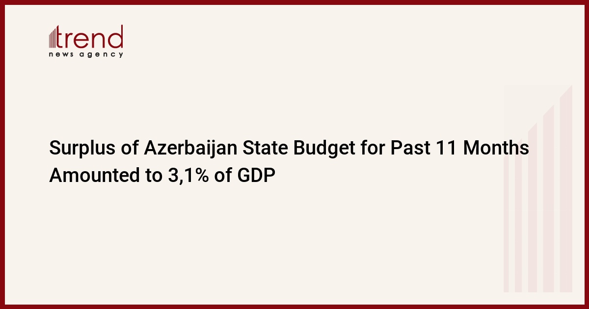 As of December 1, 2006, the factual incomes to the revenue part of the State budget of Azerbaijan amounted to AZN 3624,6 mln (22,2% of GDP), an increase of 196,5% or AZN 1779,7 as comprised with the figures of last year, a Government source informed Trend. The expenditures of the State budget totaled AZN 3116,5 (19,1% of GDP), an increase of AZN 66,9 % (AZN 1248,8 mln). Over 11 months of 2006, the surpluses of the budget totaled AZN 508,1 mln (3,1% of GDP).