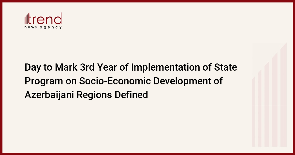 Heydar Babayev, the Azerbaijan Minister for Economic development, said that an event to mark the third anniversary of the implementation of the State Program on Socio-Economic Development of Azerbaijani Regions will be held on 13 February 2007, Trend reports.