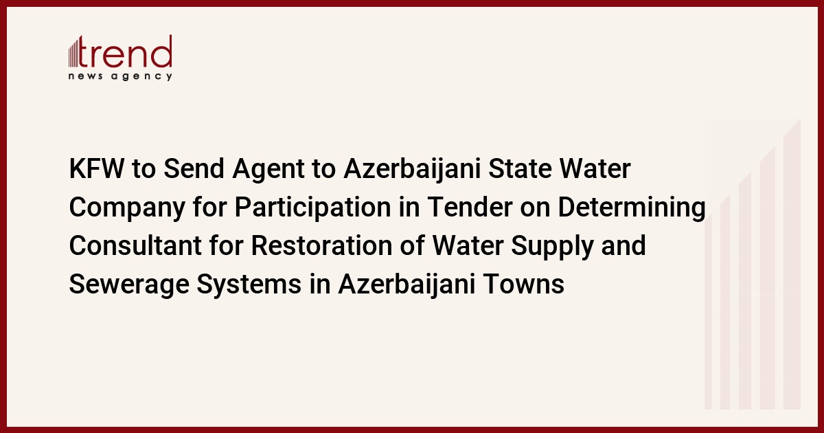 Azerbaijan, Baku / Trend corr I. Khalilova / The German Development Bank of KFW will send a tender agent to Baku on 2 August in order to attract a consultant which will assist to Azersu (Azerbaijani state water company) in a project's implementation on restoring the water supply and sewerage systems in the Azerbaijani cities of Ganja and Sheki, according to the head of KFW's Baku office, Natig Abdullayev.