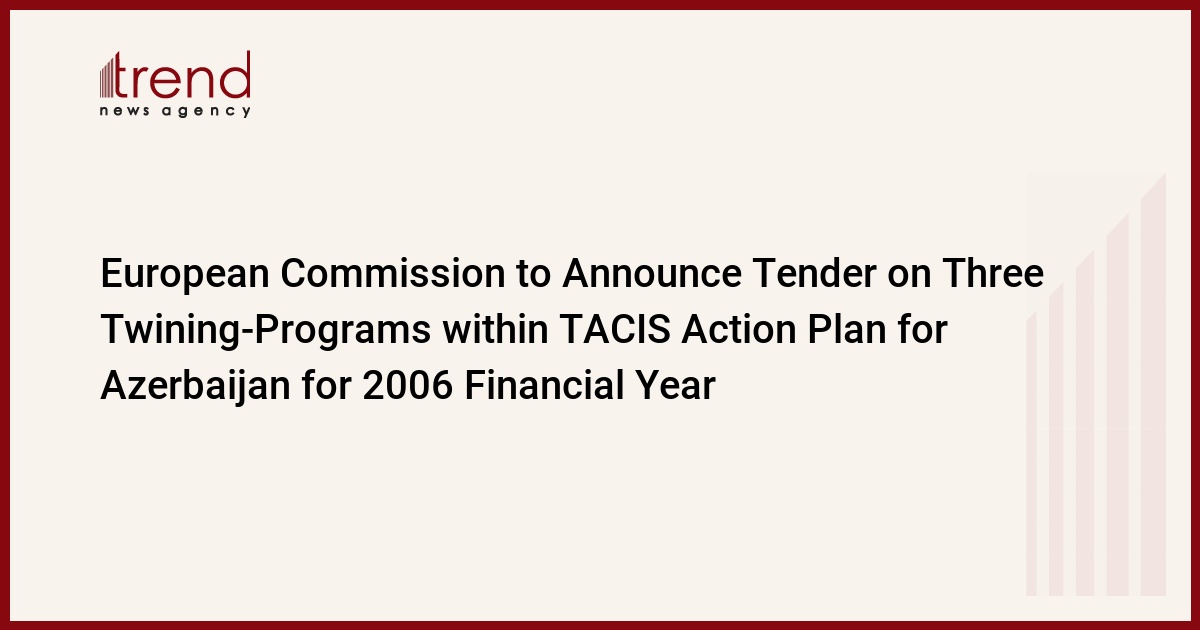 Azerbaijan, Baku / Trend corr I. Khalilova / In September-October, the European Commission will announce a tender on three projects within the framework of a twining program envisaged for Azerbaijan in the national action plan of TACIS (Technical Aid to CIS) for the 2006 financial year, the Executive Director of the European Commission's Coordinating Bureau on Technical Assistance Programs (TACIS) to Azerbaijan, Rufat Mammadov, reported.