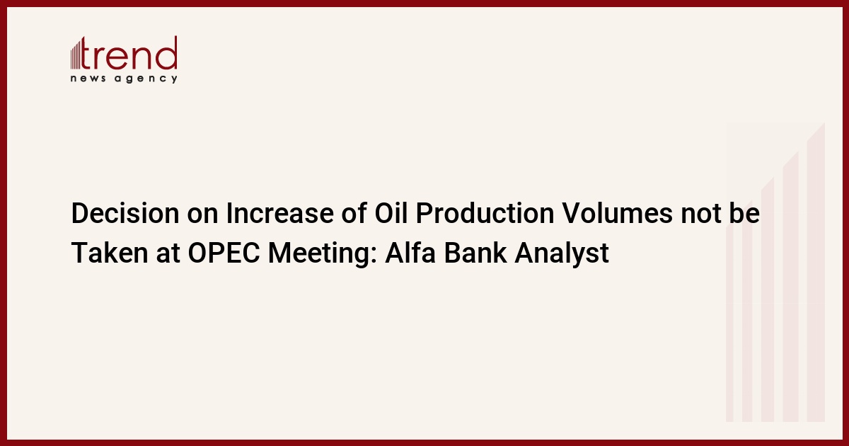 Azerbaijan, Baku / corr Trend A.Badalova / A decision on increase of volume of oil products will not be taken at the next meeting of the OPEC members, Andrey Fedorov, an analyst of Alfa Bank, said.