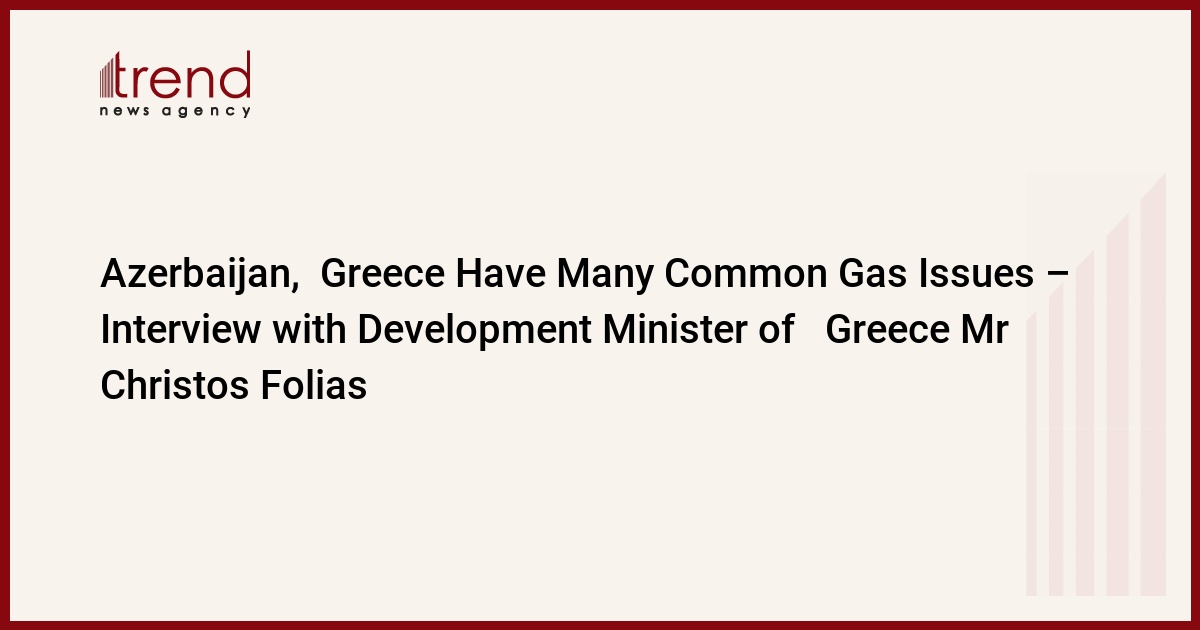 Azerbaijan, Baku, 17 March / Trend corr A. Badalova/ Interview with Minister of Development of Greece, Mr. Christos Folias, who arrived in Baku on 17 March, at the Trend News Agency.