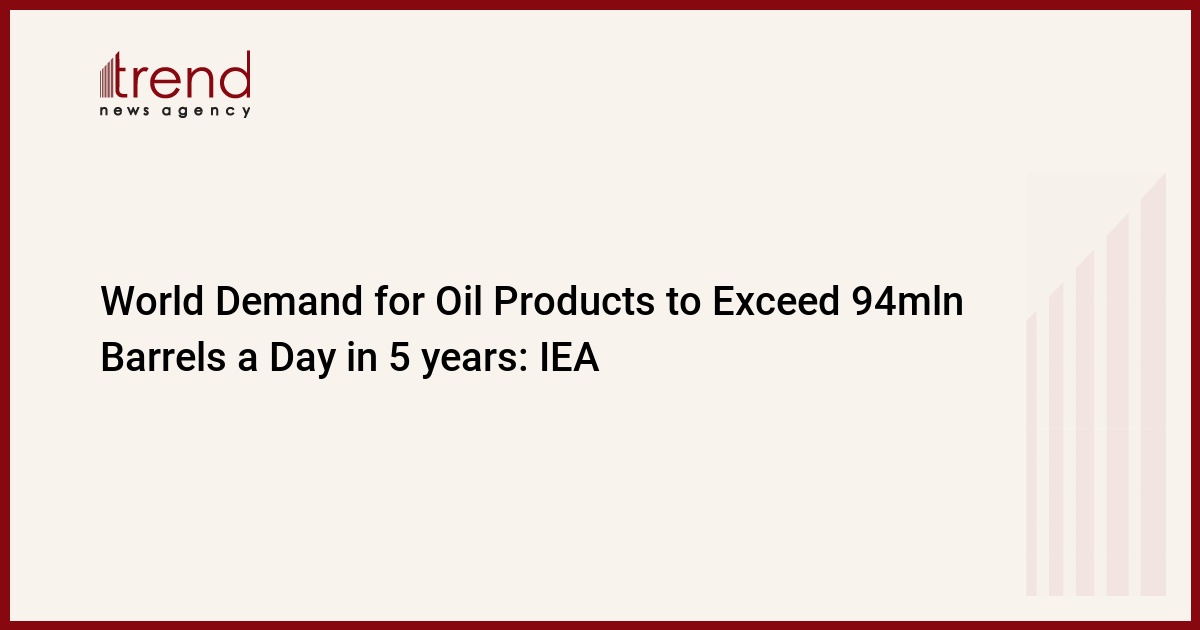 Azerbaijan, Baku, 2 July / corr Trend A.Badalova / The world demand for oil products will increase by 1.6% to 94.1mln barrels a day by 2013 as compared to 86.9mln barrels a day in 2008, the International Energy Agency (IEA) report on oil market in the mid-term prospective, placed in its official website.