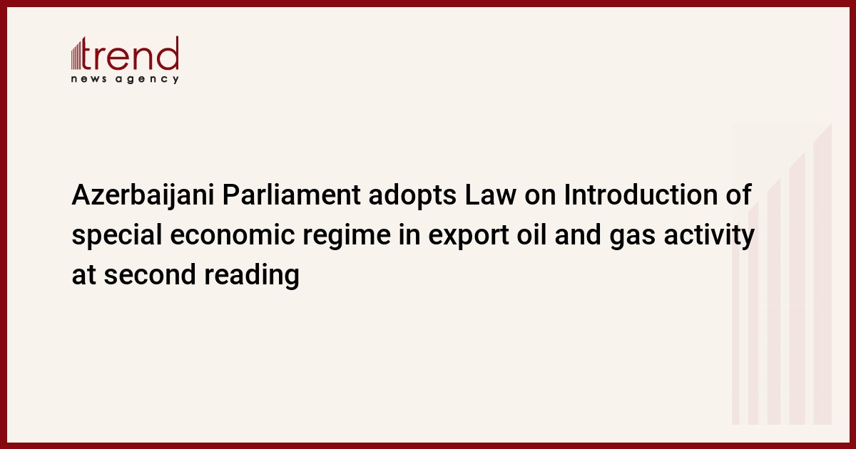 The Azerbaijani Parliament adopted the Law on Introduction of Special Economic Regime in Export Oil and Gas Activity at the second reading.