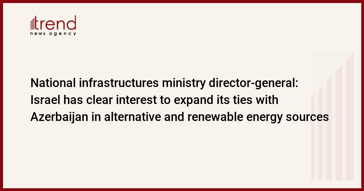 According to him, Israel has a clear interest to expand its ties with Azerbaijan in all fields and mainly in alternative and renewable energy sources.