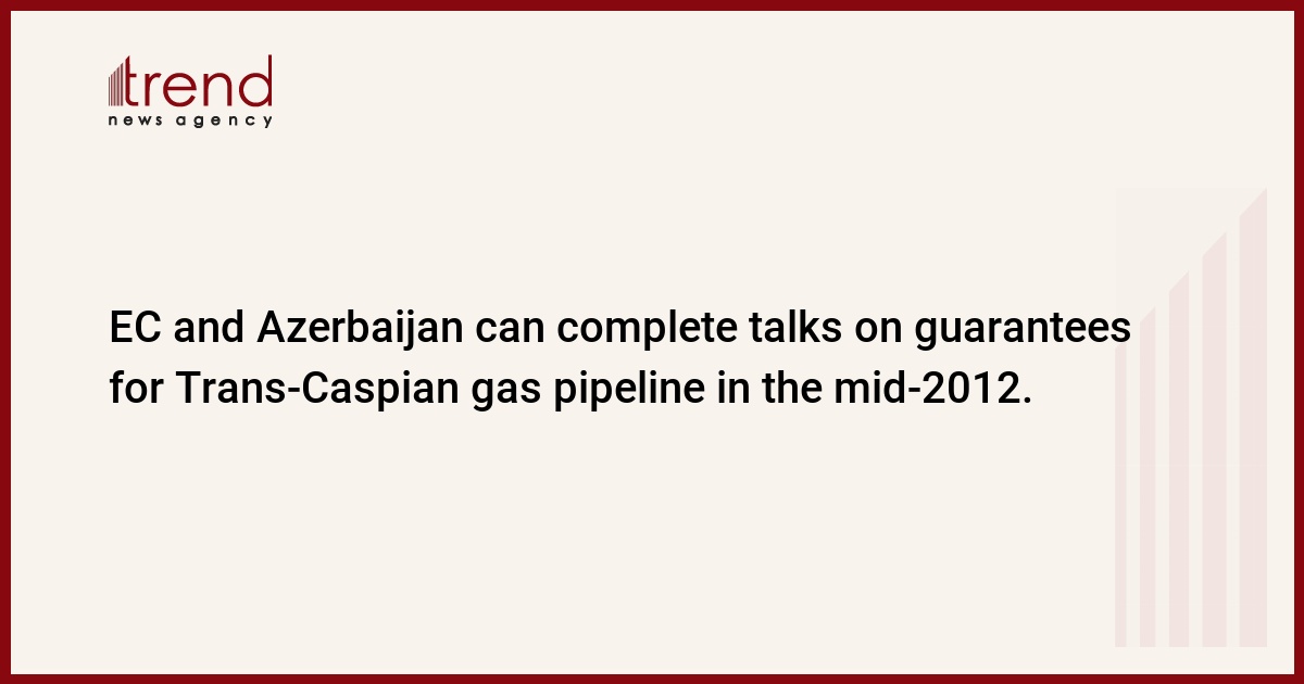 Talks between the European Commission and Azerbaijan on guarantees for the Trans-Caspian gas pipeline could be completed in mid-2012, EU Energy Commissioner Guenther Oettinger told journalists at the lobby of the conference Energy Dialogue Russia - EU: Gas Aspect. "It is not a function of the European Commission to give guarantees, our goal is to organize the work," he misspoke, RBC says.