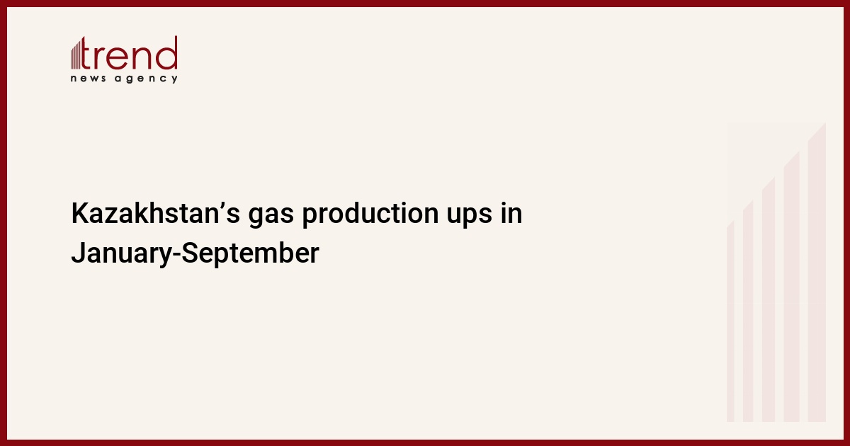 Kazakhstan's total production of gas amounted to 29.874 billion cubic meters (bcm) in January-September, 2012, compared to 29.454 bcm during the same period of 2011, the national dispatch center of the Kazakh Statistics Agency told Trend.