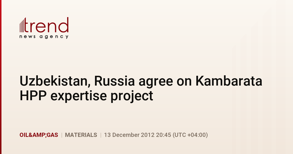 Uzbekistan and Russia have agreed to hold an international independent expertise on the construction of Kambarata HPP-1 in Kyrgyzstan, a source in the government circles told Trend on Thursday.