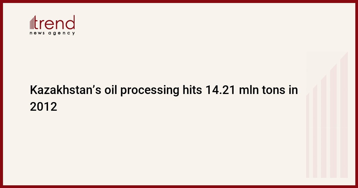 Oil processing in Kazakhstan hit 14.21 million tons in 2012, the national dispatch center of the Kazakh Statistics Agency told Trend.