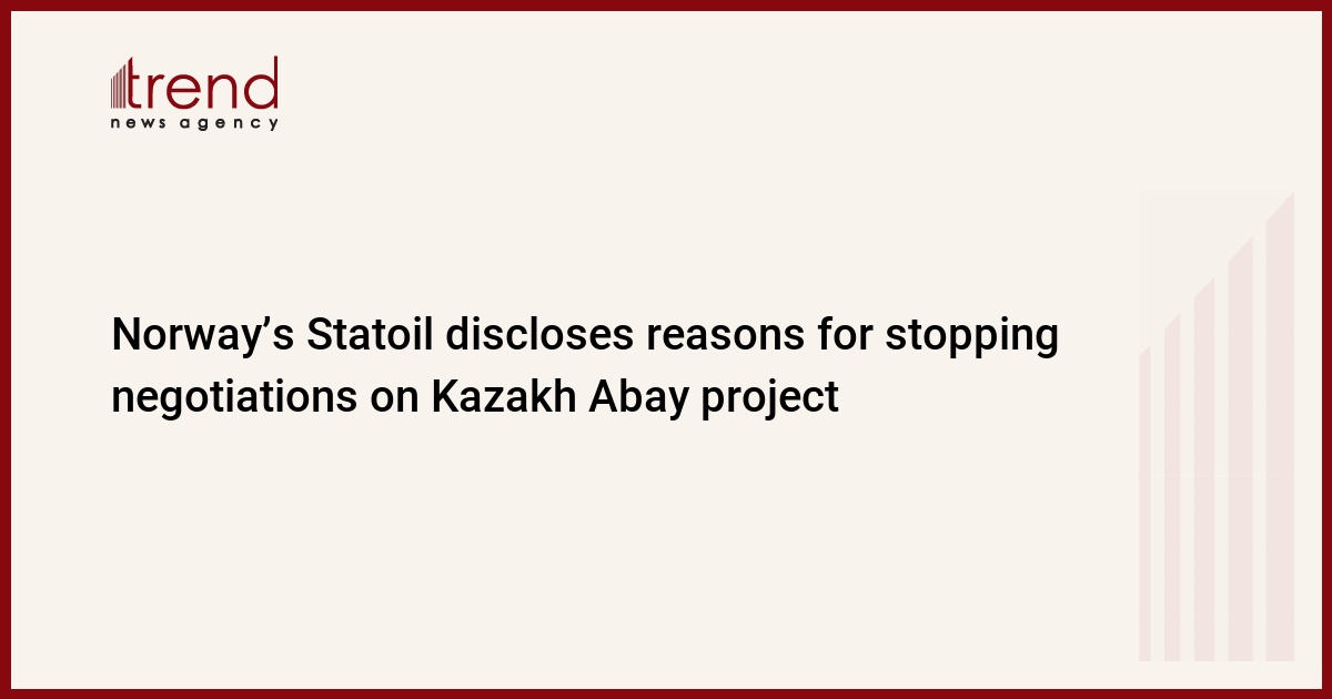 Norwegian Statoil has decided not to pursue negotiations on Abay project in the Kazakh sector of the Caspian Sea as a result of commercial and technical evaluations of the project, the company's spokesperson Bård Glad Pedersen told Trend.