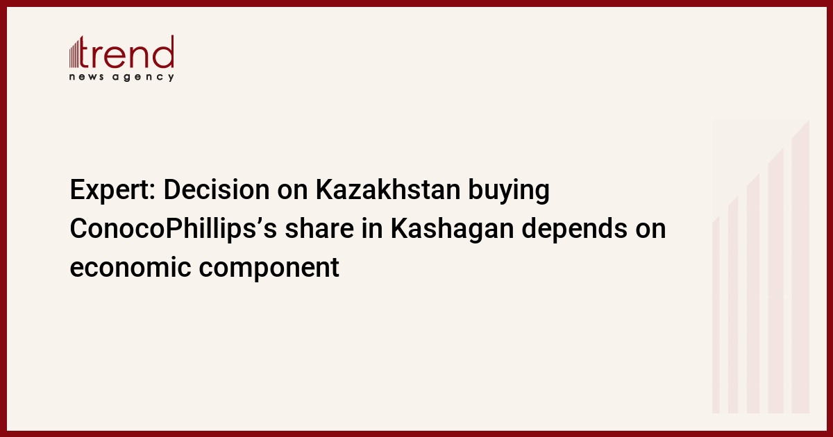 Meanwhile, an informed source in oil and gas circles told Trend, that Kazakhstan will take a decision regarding purchasing ConocoPhillips' shares in Kashagan no earlier than June this year.