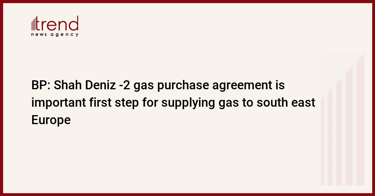 Shah Deniz-2 gas purchase agreement is important first step for supplying gas to south east Europe, BP Vice-President for Shah Deniz development Al Cook said following a contract signing ceremony in Baku on Thursday.