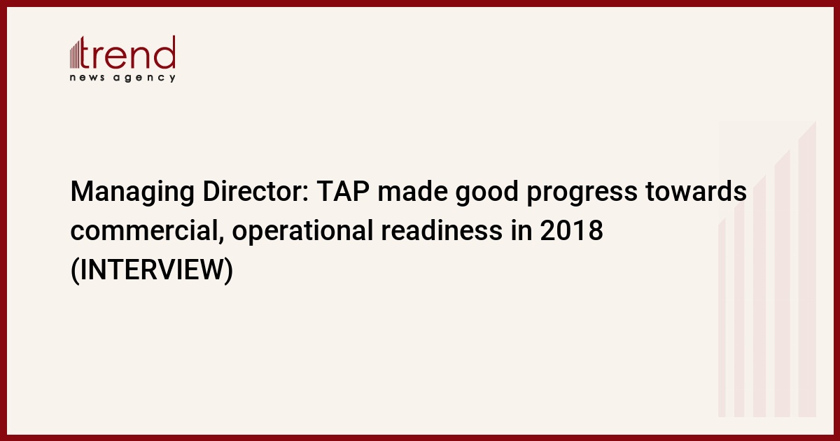 On the technical side, we will be focused on safely completing onshore pipeline construction works in Greece and Albania. Once mechanical completion is achieved, TAP will enter several phases to ensure the pipeline is entirely safe and ready for operations, in line with national and international safety and operations standards. These phases include pre-commissioning and commissioning. Additionally, 2019 will be marked by the completion of our compressor and metering stations in Greece and Albania as well as significantly progressing the offshore construction activities, onshore pipeline construction and the pipeline receiving terminal in Italy. Finally, early 2019 we also expect to fully complete construction of the first section of the pipeline in Greece.