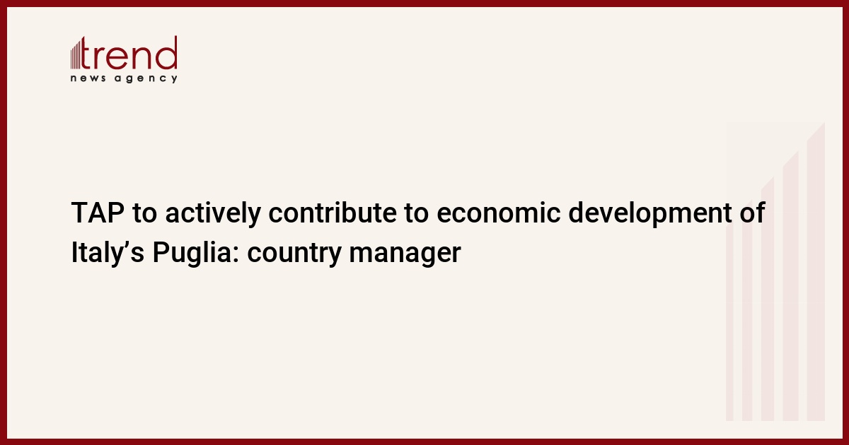 The consortium for construction of the Trans Adriatic Pipeline (TAP), which envisages transportation of Azerbaijani gas to Europe, intends to actively contribute to the economic development of Italy’s Puglia region through which it runs, Trend reports citing Michele Mario Elia, country manager of TAP Italia.