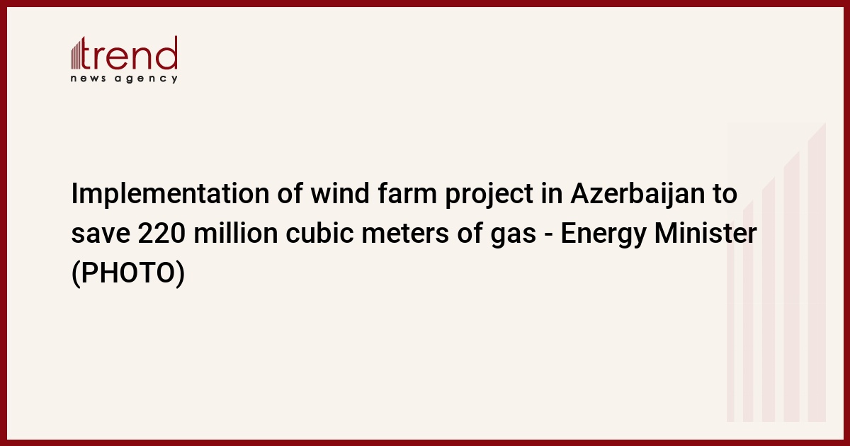 As a result of the implementation of the first project between Acwa Power (Saudi Arabia) and the Azerbaijani Ministry of Energy, the wind farm will generate about 1 billion kilowatts/hour of electricity per year, save 220 million cubic meters of gas, prevent over 400,000 tons of CO2 emissions, and create new jobs, as well as a perspective for manufacturing and service industries, Energy Minister of Azerbaijan Parviz Shahbazov said Trend reports.