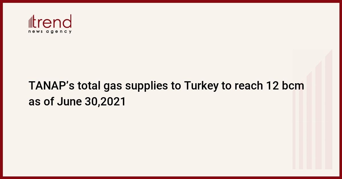Trans Anatolian Natural Gas Pipeline’s (TANAP’) total gas supplies to Turkey to reach 12 billion cubic meters as of June 30,2021, TANAP General Manager Saltuk Duzyol said during an online press conference, Trend reports.